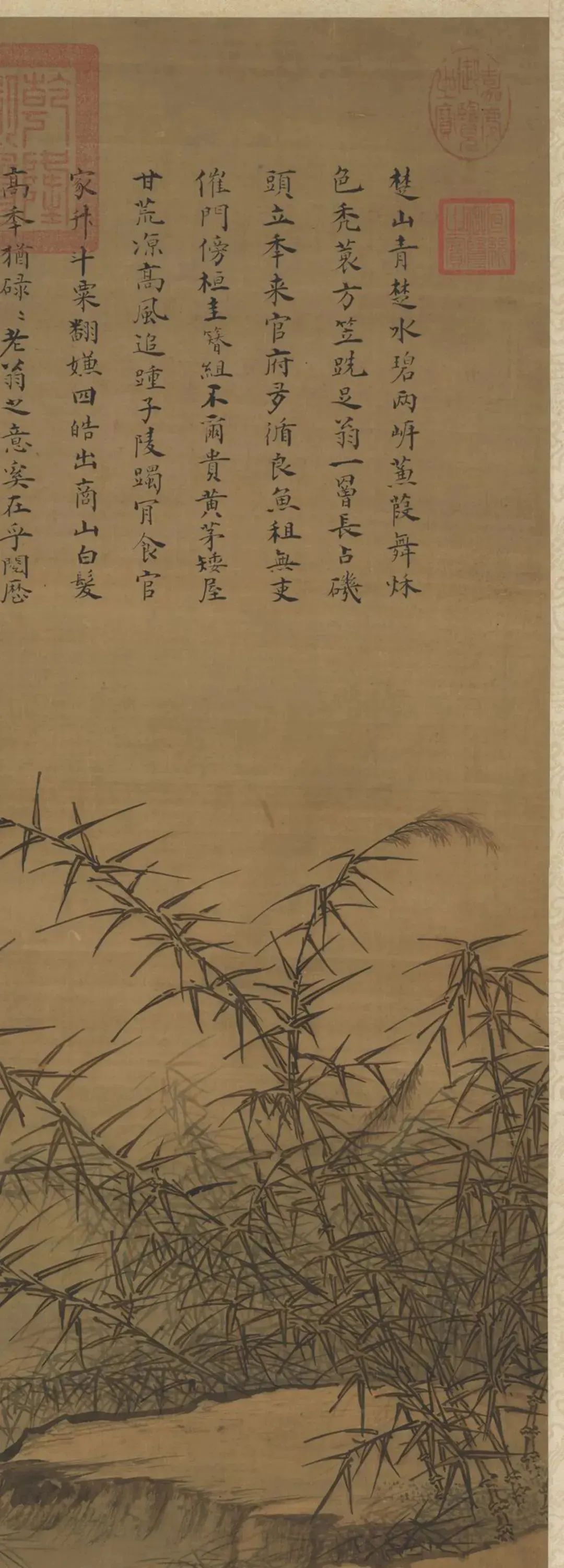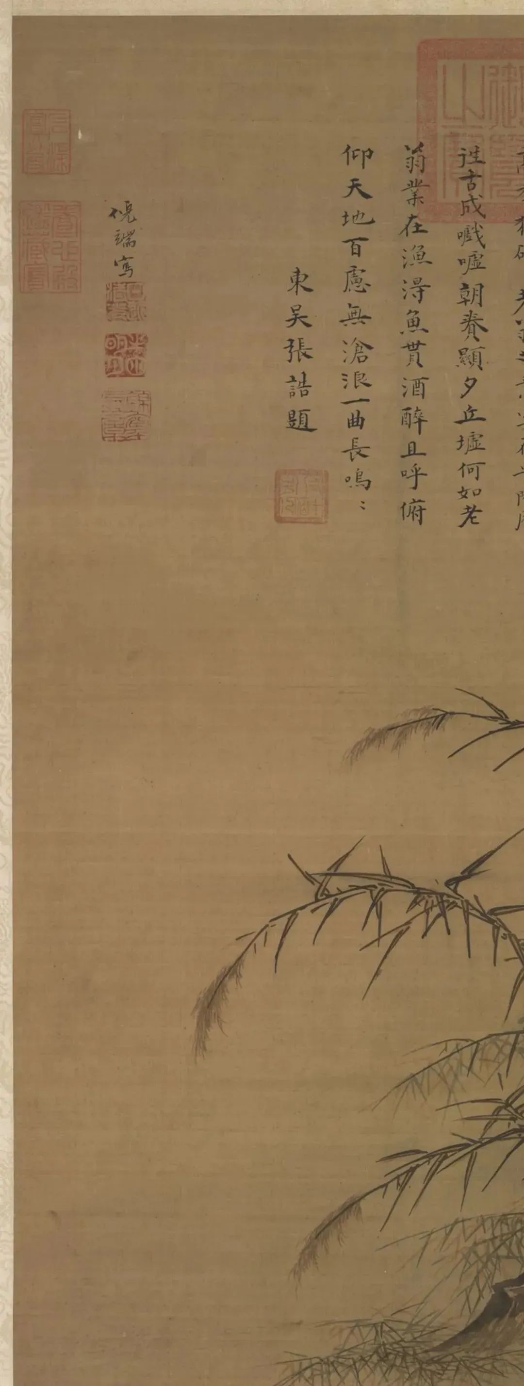 其次,倪端的笔触细腻而生动,他通过墨色的浓淡、干湿、虚实等变化,巧妙地表现了物体的质感和光影效果。渔翁的衣纹、面容、动作都刻画得栩栩如生,仿佛就在我们眼前。而水中的鱼儿、岸上的芦苇、远处的山峦,也都以细腻的笔触呈现出来,使得整个画面充满了生机和活力。