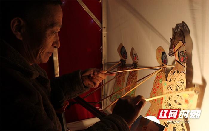 1月18日,攸县开展群众文化活动,这场活动也是宁曾伟雄新年的首场演出,在幕后只见他两手操纵影子,生、净、未等角色在他口腔中变换着。